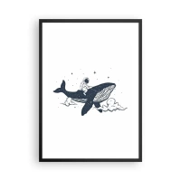 Affiche dans un cadre noir - Poster - Un astronaute debout sur une fusée volant dans l'espace - 50x70cm - Surfeur de l'espace - Décoration murale moderne pour le salon et la chambre ARTTOR