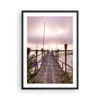 Affiche dans un cadre noir - Poster - Pont en bambou sur une eau calme au crépuscule - 50x70cm - Le silence et le calme d'Asie - Décoration murale moderne pour le salon et la chambre ARTTOR
