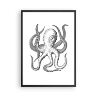 Affiche dans un cadre noir - Poster - Illustration de pieuvre vintage en noir et blanc - 50x70cm - Dansant avec les vagues - Décoration murale moderne pour le salon et la chambre ARTTOR