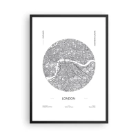 Affiche dans un cadre noir - Poster - Une carte minimaliste en noir et blanc de Londres - 50x70cm - Anatomie de Londres - Décoration murale moderne pour le salon et la chambre ARTTOR