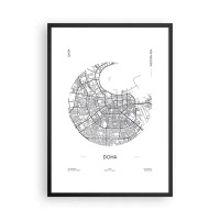 Affiche dans un cadre noir - Poster - Une carte minimaliste en noir et blanc de Doha - 50x70cm - Anatomie de Doha - Décoration murale moderne pour le salon et la chambre ARTTOR