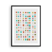 Affiche dans un cadre noir - Poster - Carrés géométriques colorés sur fond clair - 50x70cm - Jeu inconnu - Décoration murale moderne pour le salon et la chambre ARTTOR