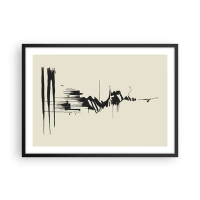 Affiche dans un cadre noir - Poster - Traits abstraits de noir sur fond blanc - 70x50cm - Abstraction – expression du noir - Décoration murale moderne pour le salon et la chambre ARTTOR