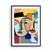 Affiche dans un cadre noir - Poster - Composition abstraite colorée de visages dans un style cubiste - 50x70cm - Le Rendez-vous de Picasso - Décoration murale moderne pour le salon et la chambre ARTTOR