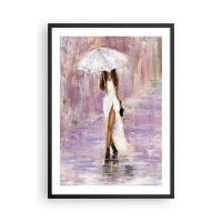 Affiche dans un cadre noir - Poster - Femme avec un parapluie sous la pluie - 50x70cm - Sous la pluie lilas - Décoration murale moderne pour le salon et la chambre ARTTOR