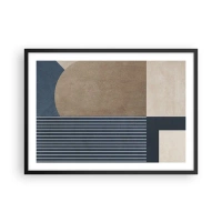 Affiche dans un cadre noir - Poster - Figures géométriques dans les tons beige et bleu marine avec des lignes - 70x50cm - Composition simple et en rondeur - Décoration murale moderne pour le salon et la chambre ARTTOR
