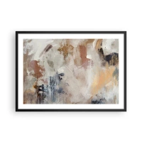 Affiche dans un cadre noir - Poster - Taches abstraites dans des tons neutres de beige et d'or - 70x50cm - Abstraction brumeuse - Décoration murale moderne pour le salon et la chambre ARTTOR