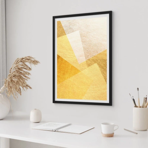 Affiche dans un cadre noir - Poster - Abstraction géométrique dorée avec un effet métallique - 50x70cm - Météo géométrique - Décoration murale moderne pour le salon et la chambre ARTTOR