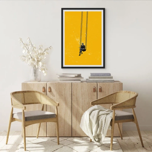 Affiche dans un cadre noir - Poster - Graphique minimaliste avec un personnage sur une balançoire - 50x70cm - Un jour comme tous les jours - Décoration murale moderne pour le salon et la chambre ARTTOR