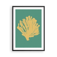 Affiche dans un cadre noir - Poster - Corail doré sur fond turquoise - 50x70cm - Buisson forestier sous-marin - Décoration murale moderne pour le salon et la chambre ARTTOR