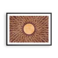 Affiche dans un cadre noir - Poster - Motif ensoleillé avec des rayons sur un fond dans les tons marron - 70x50cm - Icône du soleil - Décoration murale moderne pour le salon et la chambre ARTTOR