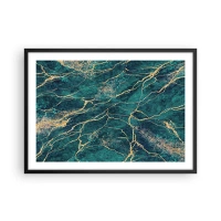 Affiche dans un cadre noir - Poster - Motif de marbre texturé dans des tons turquoise et or - 70x50cm - Mine d'or - Décoration murale moderne pour le salon et la chambre ARTTOR