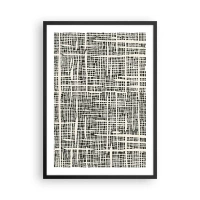 Affiche dans un cadre noir - Poster - Motif géométrique en noir sur fond clair - 50x70cm - Composition tissée - Décoration murale moderne pour le salon et la chambre ARTTOR