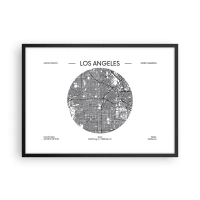 Affiche dans un cadre noir - Poster - Une carte de Los Angeles dans un style minimaliste en noir et blanc - 70x50cm - Anatomie de Los Angeles - Décoration murale moderne pour le salon et la chambre ARTTOR