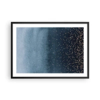 Affiche dans un cadre noir - Poster - Motifs bleus abstraits avec des accents dorés - 70x50cm - Poussière d'or - Décoration murale moderne pour le salon et la chambre ARTTOR