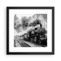Affiche dans un cadre noir - Poster - Attend à la gare... - 30x30 cm