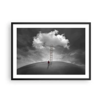 Affiche dans un cadre noir - Poster - Une personne portant un manteau rouge et une échelle menant à un nuage - 70x50cm - Tout est possible - Décoration murale moderne pour le salon et la chambre ARTTOR