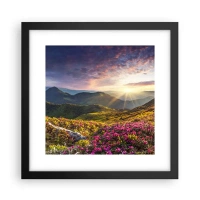 Affiche dans un cadre noir - Poster - Fraîcheur matinale en montagne - 30x30 cm