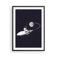 Affiche dans un cadre noir - Poster - Un astronaute debout sur une fusée volant dans l'espace - 50x70cm - Surfeur de l'espace - Décoration murale moderne pour le salon et la chambre ARTTOR
