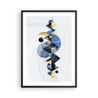 Affiche dans un cadre noir - Poster - Abstraction géométrique avec des éléments dorés et bleu marine - 50x70cm - Paysage géométrique - Décoration murale moderne pour le salon et la chambre ARTTOR
