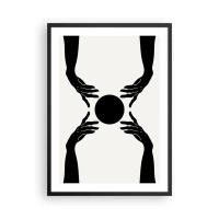 Affiche dans un cadre noir - Poster - Graphique noir et blanc d'une main avec une balle - 50x70cm - Signe secret - Décoration murale moderne pour le salon et la chambre ARTTOR