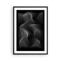 Affiche dans un cadre noir - Poster - Composition abstraite de lignes noires sur fond blanc - 50x70cm - Ondes et vibrations - Décoration murale moderne pour le salon et la chambre ARTTOR