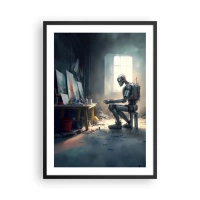 Affiche dans un cadre noir - Poster - Un robot artiste peint des tableaux dans son atelier - 50x70cm - L'acte de création - Décoration murale moderne pour le salon et la chambre ARTTOR