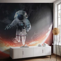 Papier Peint Photo Premium Sand - Un astronaute dérivant dans l'espace au-dessus d'une planète - 100x70cm - Puis-je rester un peu plus longtemps ? - Décoration murale moderne pour le salon et la chambre ARTTOR