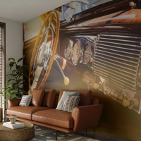 Papier Peint Photo Premium Sand - Intérieur de voiture classique avec garniture en bois - 100x70cm - Souffle de luxe venu du passé - Décoration murale moderne pour le salon et la chambre ARTTOR