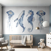 Papier Peint Autocollant Deluxe Sticker - Merveilles de la mer - Animaux marins, hippocampe, Méduse - 100x70 cm