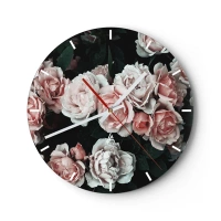 Horloge murale - Pendule murale - Un bouquet de roses roses sur fond sombre - 30x30cm - Ensemble de rose - Décoration murale moderne pour le salon, la cuisine et la chambre ARTTOR