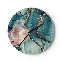 Horloge murale - Pendule murale - Des touches de couleur artistiques dans des tons turquoise et rose avec des accents dorés - 30x30cm - Soie bleu, tulle rose - Décoration murale moderne pour le salon, la cuisine et la chambre ARTTOR