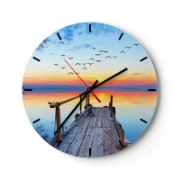 Horloge murale - Pendule murale - Une jetée sur le lac sous les rayons du soleil couchant - 30x30cm - Il est temps de rentrer... - Décoration murale moderne pour le salon, la cuisine et la chambre ARTTOR