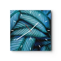 Horloge murale - Pendule murale - Un gros plan de feuilles turquoise avec des détails vifs. - 30x30cm - Lignes de vie - Décoration murale moderne pour le salon et la chambre ARTTOR