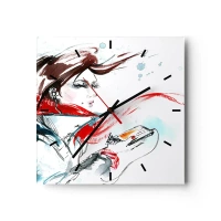 Horloge murale - Pendule murale - Portrait artistique d'une femme avec des détails et un accent rouge - 30x30cm - Avec elle, c'est tous les jours la fête - Décoration murale moderne pour le salon et la chambre ARTTOR