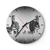 Horloge murale - Pendule murale - Deux zèbres dans la savane en noir et blanc - 30x30cm - Le monde est bel et bien noir et blanc - Décoration murale moderne pour le salon, la cuisine et la chambre ARTTOR