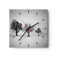 Horloge murale - Pendule murale - Trois arbres dans un champ enneigé dans un style monochrome - 30x30cm - A quoi rêvent-ils? - Décoration murale moderne pour le salon et la chambre ARTTOR