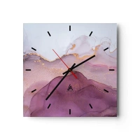 Horloge murale - Pendule murale - Une composition abstraite dans des tons de violet et d'or. - 30x30cm - Vagues lilas et violettes - Décoration murale moderne pour le salon et la chambre ARTTOR