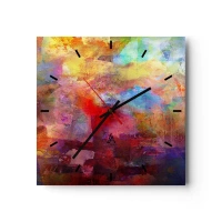 Horloge murale - Pendule murale - Abstraction colorée dans des tons chauds et froids - 30x30cm - Regardez à l'intérieur de l'arc-en-ciel - Décoration murale moderne pour le salon et la chambre ARTTOR