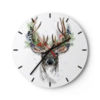 Horloge murale - Pendule murale - Cerf stylisé avec des bois décoratifs - 30x30cm - En robe de fête - Décoration murale moderne pour le salon, la cuisine et la chambre ARTTOR