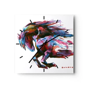 Horloge murale - Pendule murale - Un cheval aux couleurs abstraites dynamiques symbolisant la liberté - 30x30cm - Dans le ravissement - Décoration murale moderne pour le salon et la chambre ARTTOR