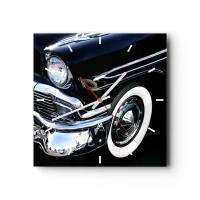 Horloge murale - Pendule murale - Une voiture rétro classique avec du chrome brillant et des ailerons - 30x30cm - C'est exactement pourquoi c'est beau ! - Décoration murale moderne pour le salon et la chambre ARTTOR