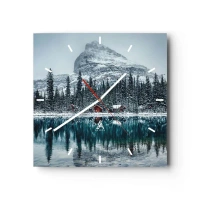 Horloge murale - Pendule murale - Paysage d'hiver avec des chalets dans la forêt au bord d'un lac gelé - 30x30cm - Retraite canadienne - Décoration murale moderne pour le salon et la chambre ARTTOR