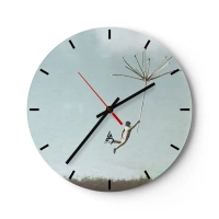 Horloge murale - Pendule murale - Une silhouette flottant dans les airs tenant un pissenlit géant - 30x30cm - Cerfs-volants, pissenlits, vent - Décoration murale moderne pour le salon, la cuisine et la chambre ARTTOR