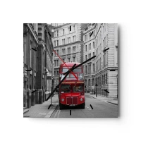 Horloge murale - Pendule murale - Un bus rouge sur fond de bâtiments urbains noirs et blancs. - 30x30cm - La vie de tous les jours ne doit pas être grise - Décoration murale moderne pour le salon et la chambre ARTTOR