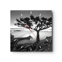 Horloge murale - Pendule murale - Paysage noir et blanc avec un arbre solitaire sur une falaise au-dessus de la mer - 30x30cm - Paix jusqu'à l'horizon - Décoration murale moderne pour le salon et la chambre ARTTOR
