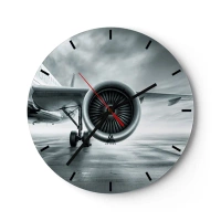 Horloge murale - Pendule murale - Vue du moteur d'un avion de ligne sur la piste de l'aéroport - 30x30cm - Sent la force! - Décoration murale moderne pour le salon, la cuisine et la chambre ARTTOR