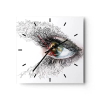 Horloge murale - Pendule murale - Œil artistique avec un iris en forme de tournesol - 30x30cm - Un look aussi chaud que l'été - Décoration murale moderne pour le salon et la chambre ARTTOR