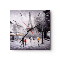 Horloge murale - Pendule murale - Une vue de la Tour Eiffel dans un décor monochrome avec des touches de couleur - 30x30cm - Balade parisienne - Décoration murale moderne pour le salon et la chambre ARTTOR