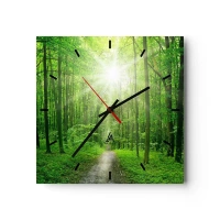 Horloge murale - Pendule murale - Chemin dans la forêt avec les rayons du soleil - 30x30cm - Cathédrale verte - Décoration murale moderne pour le salon et la chambre ARTTOR